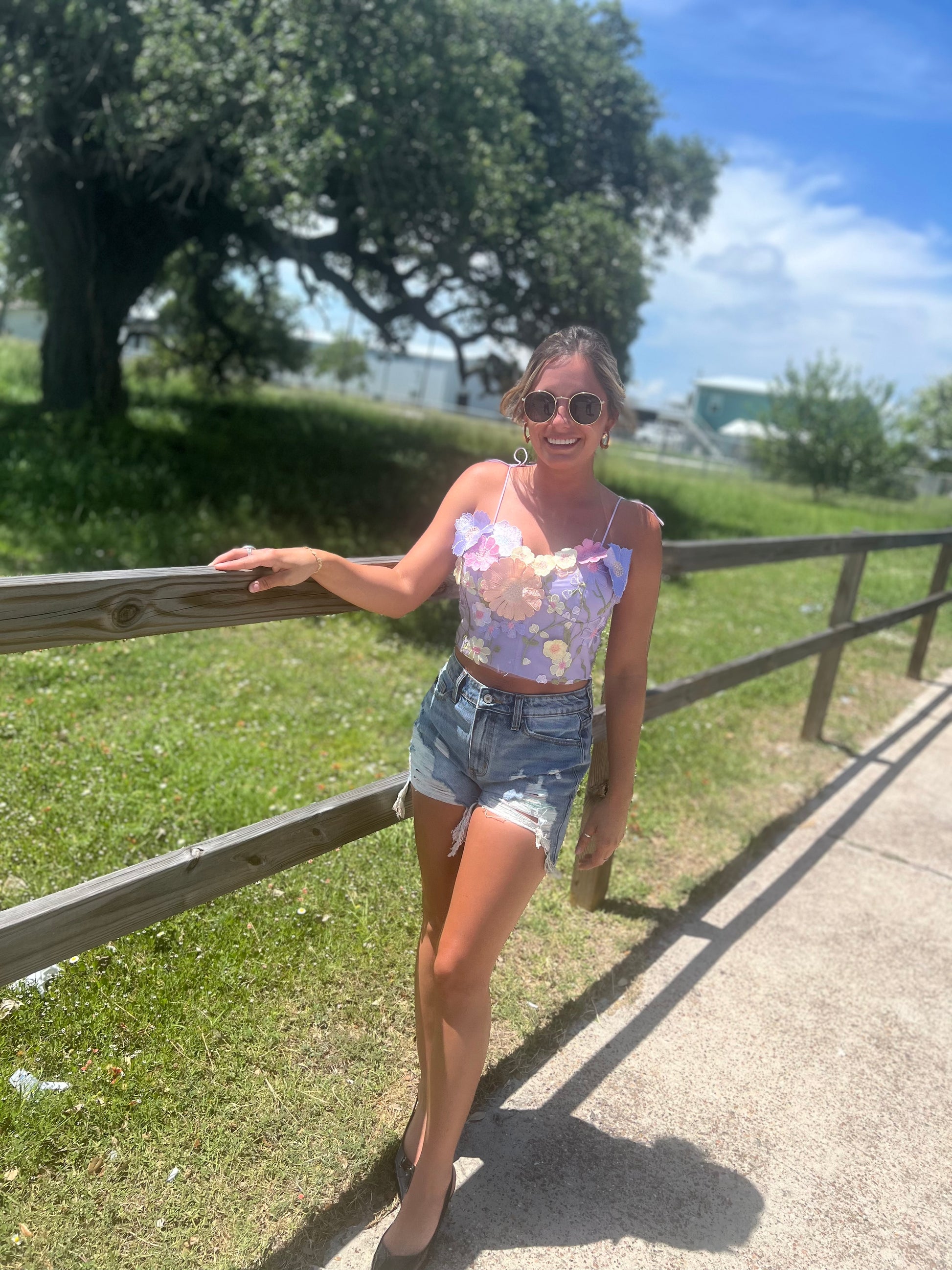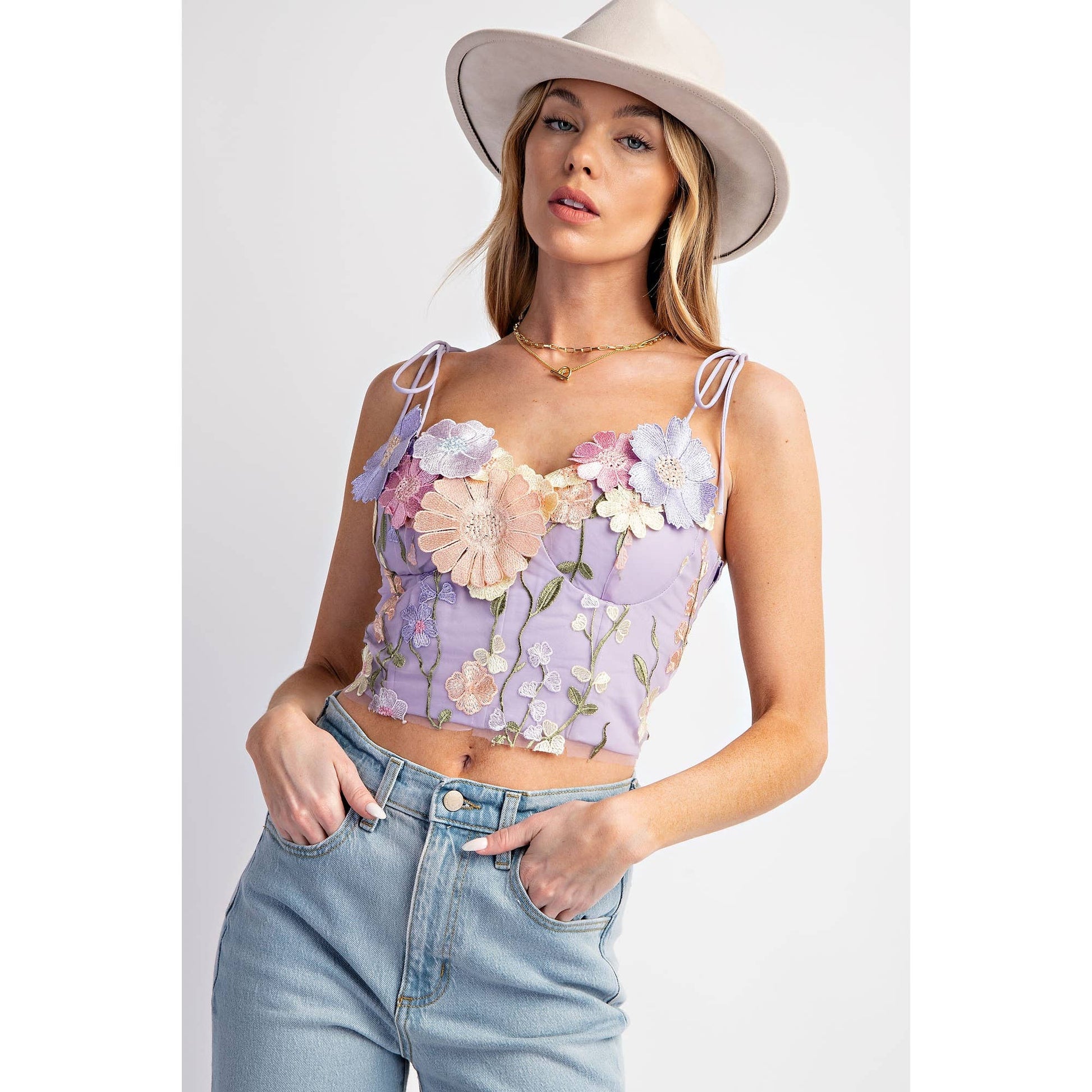 3D FLOWER EMBROIDERY TANK TOP: Lavender