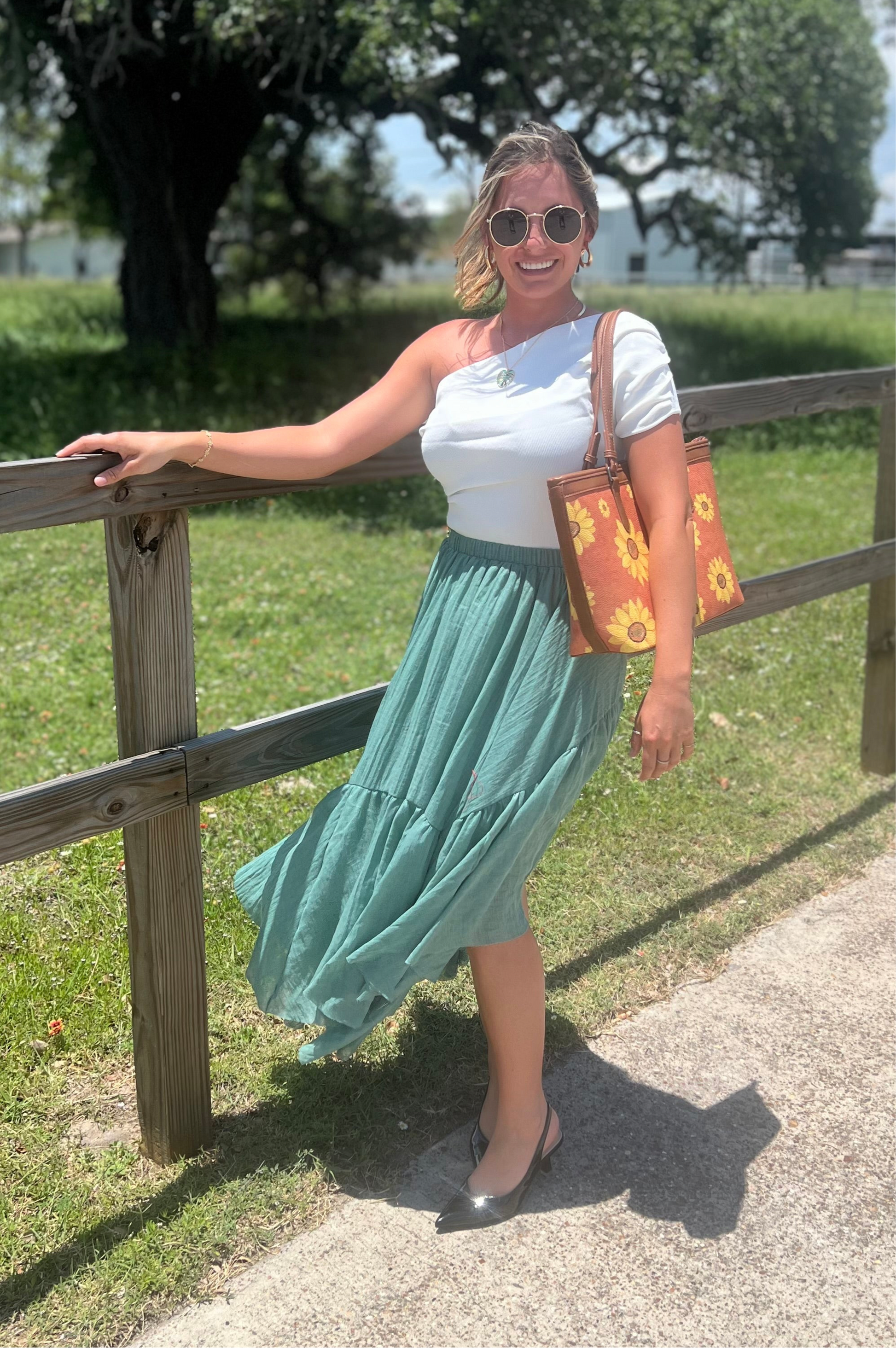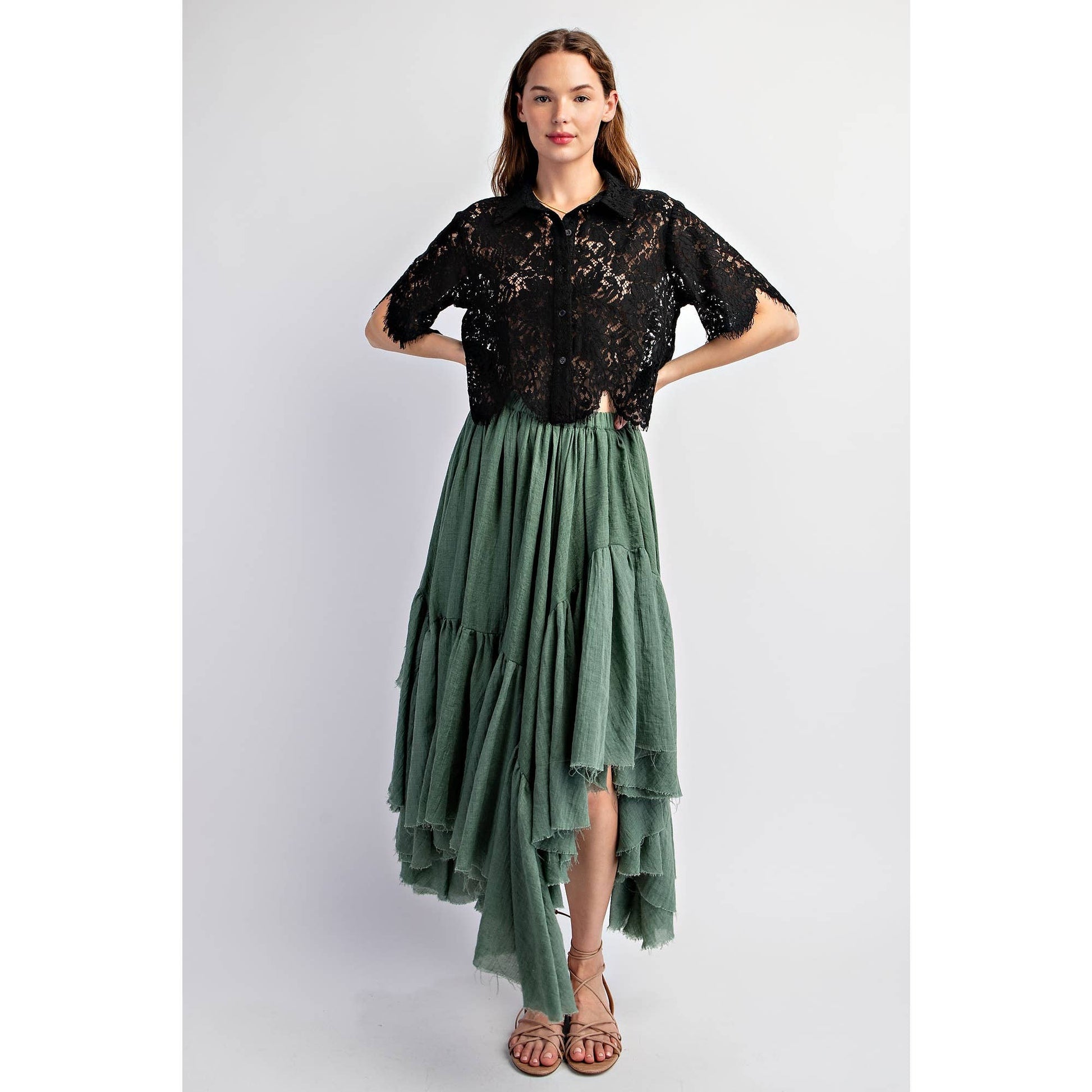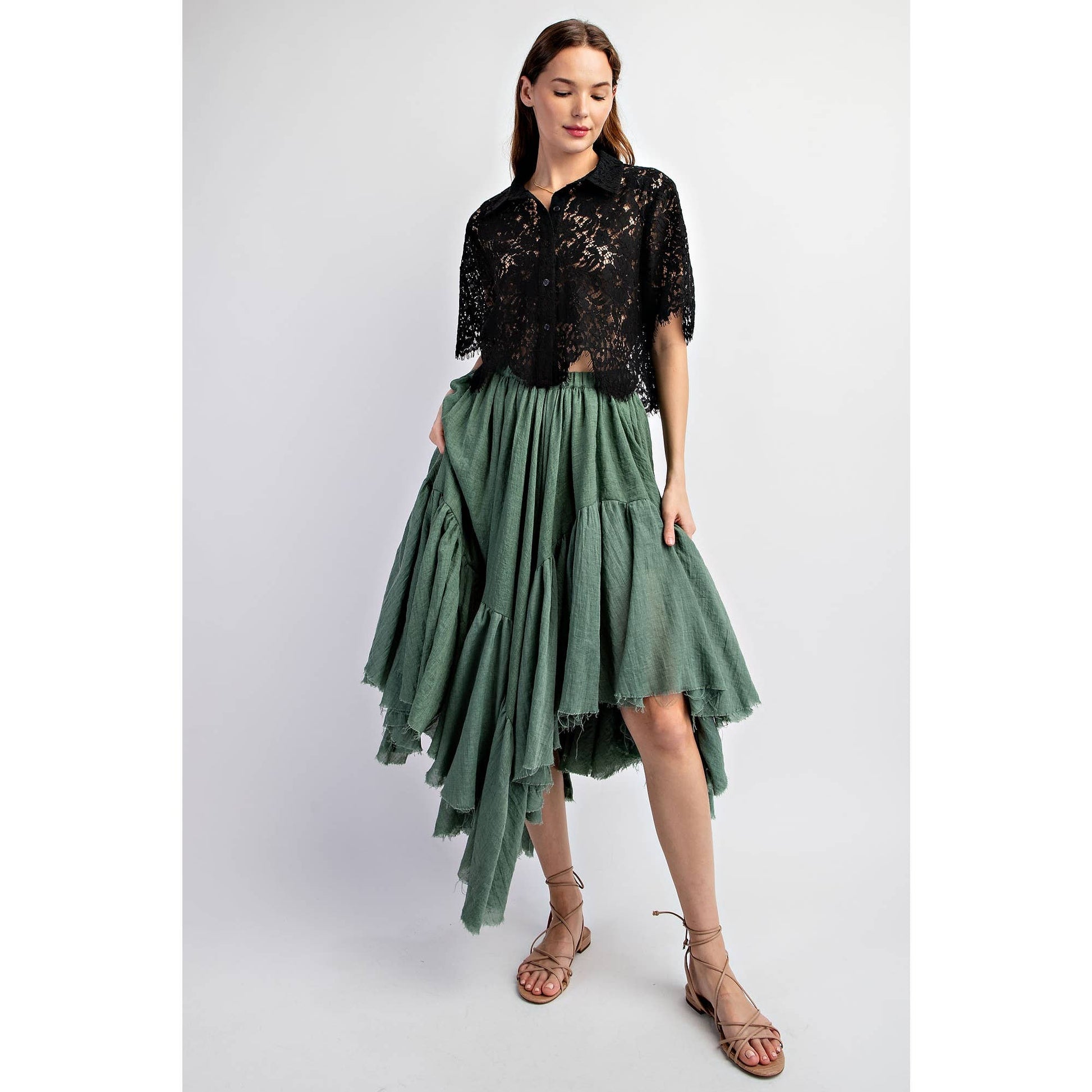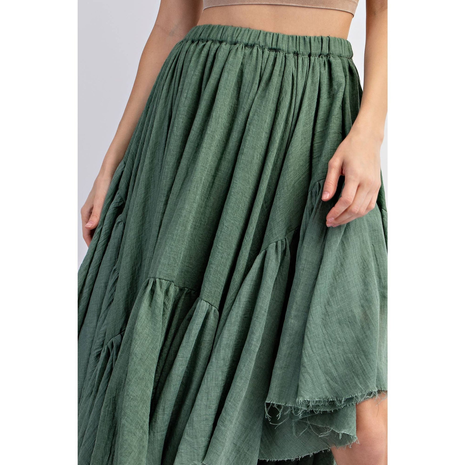 ASYMMETRICAL RAW-EDGE RUCHED UNEVEN HEMLINE SKIRT: Olive