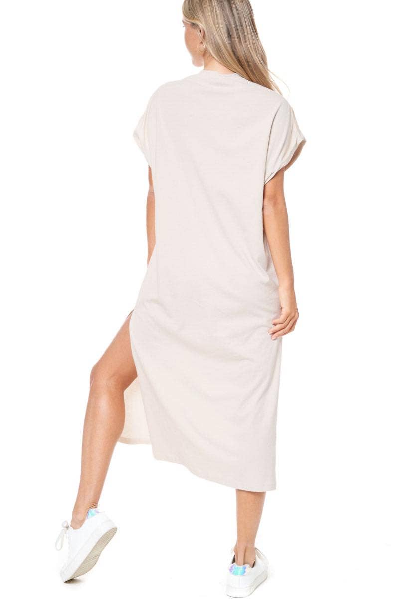 BOHO PEACE FLORAL GRAPHIC, PREMIUM COTTON, RELAXED FIT, CAP SLEEVE, SIDE SLIT, MAXI DRESS
