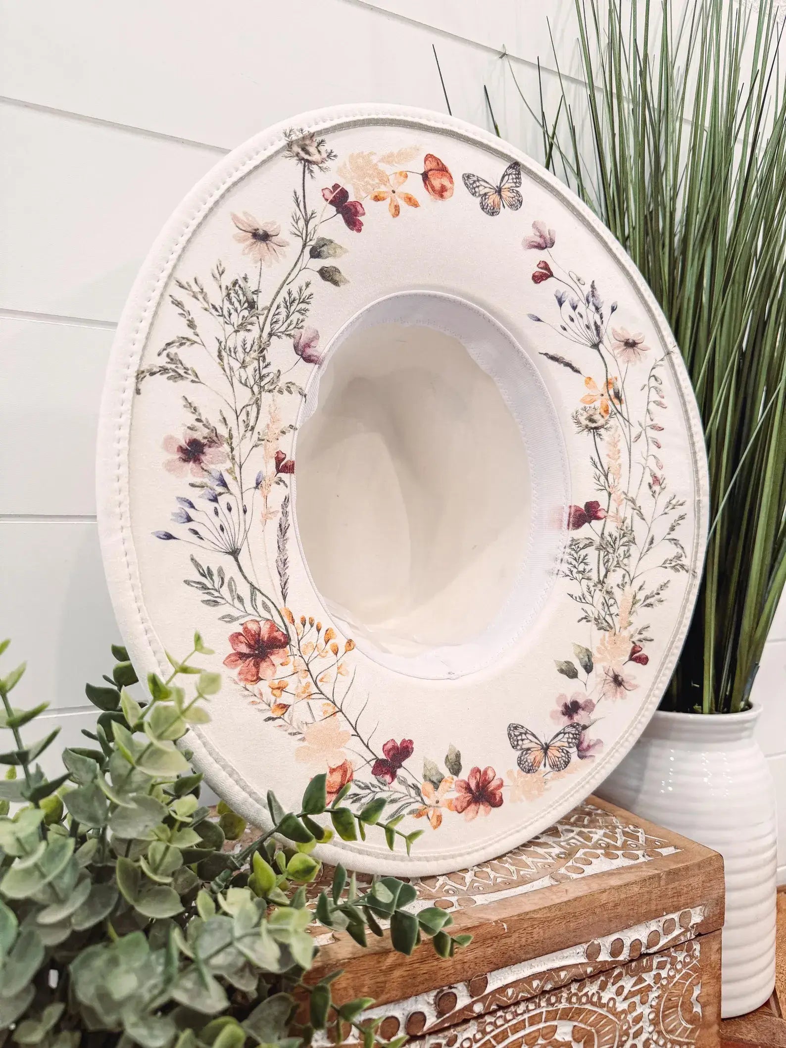 Floral Print Hat, Floral Cowboy Hat, Sunflower Hat, wildflower Fedora, Floral Suede Hat, Boho Hat, Vegan Suede, cowgirl hat, wide brim hat Elevate your style with our beautifully printed hats! The hats have an adjustable drawstring to fit all the way from child to adult sizes. They fit 20-24.5"