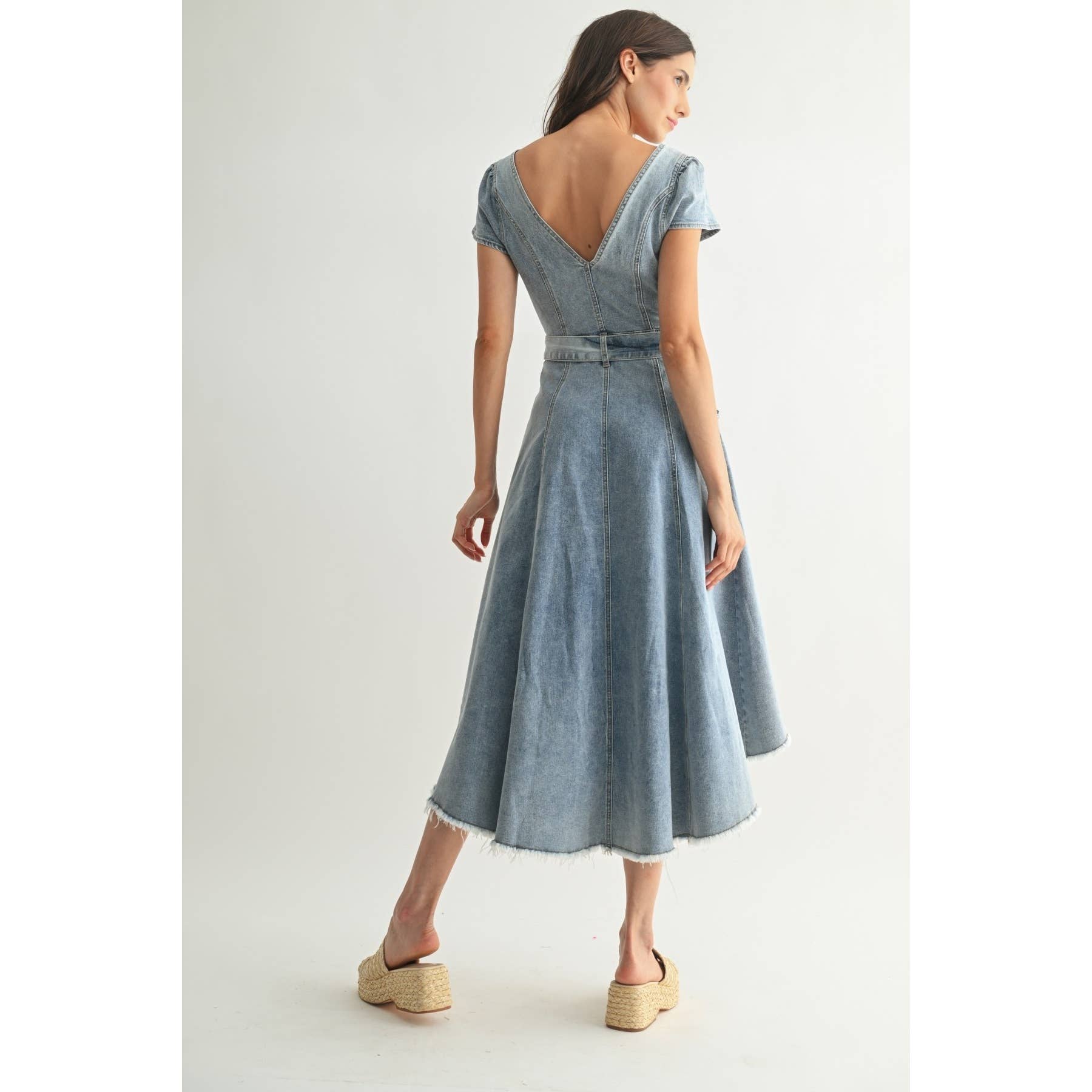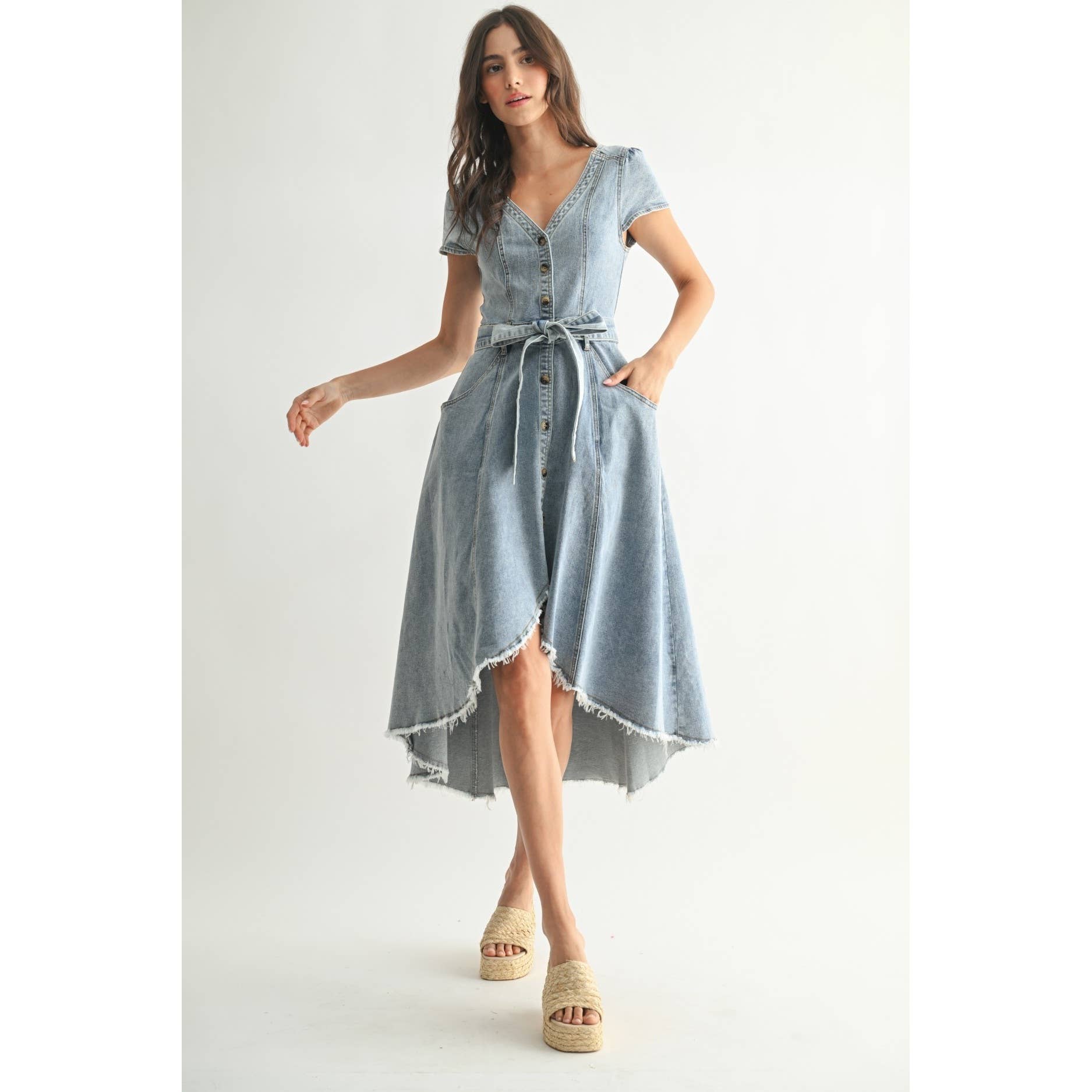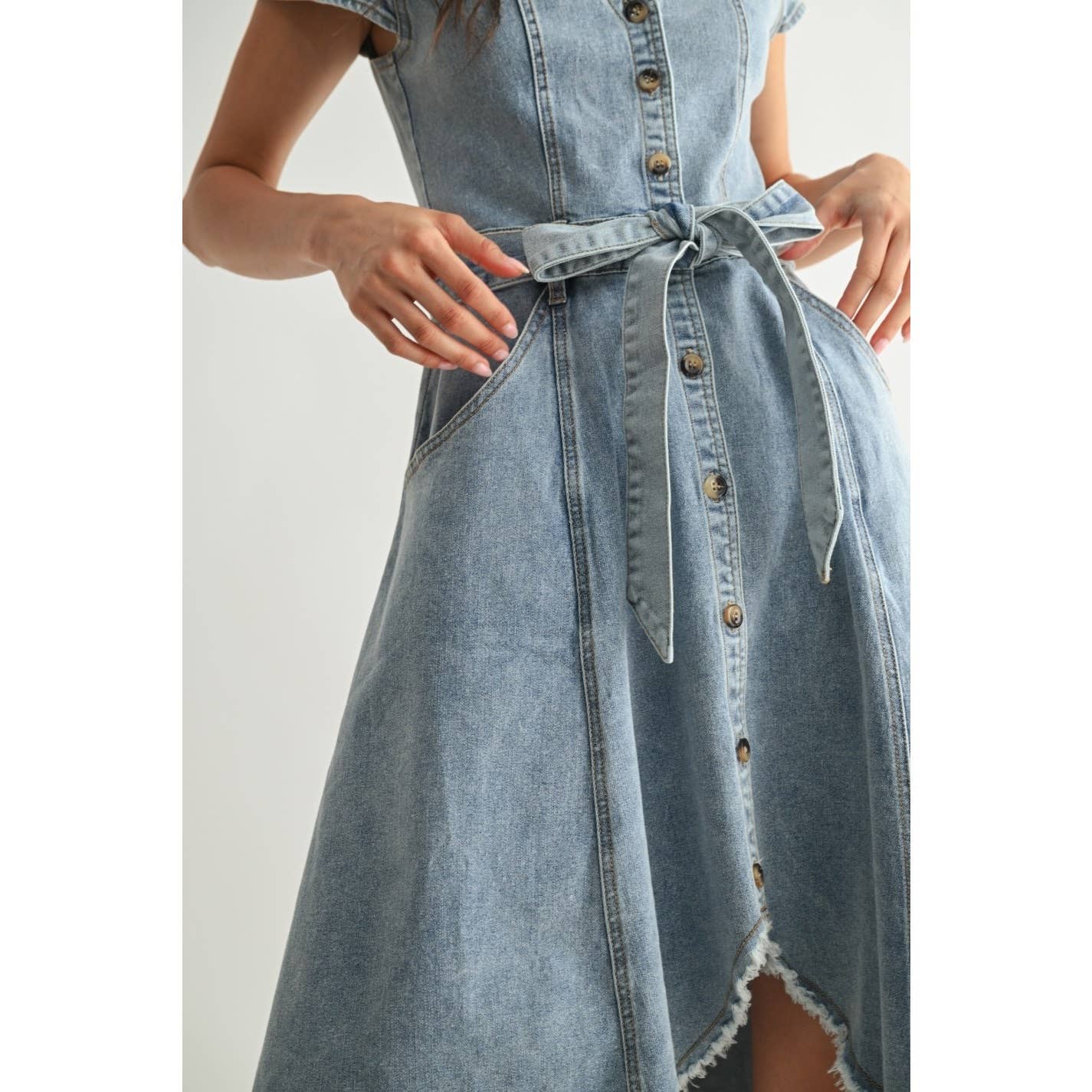FRONT BUTTON DOWN ASYMMETRICAL DENIM DRESS