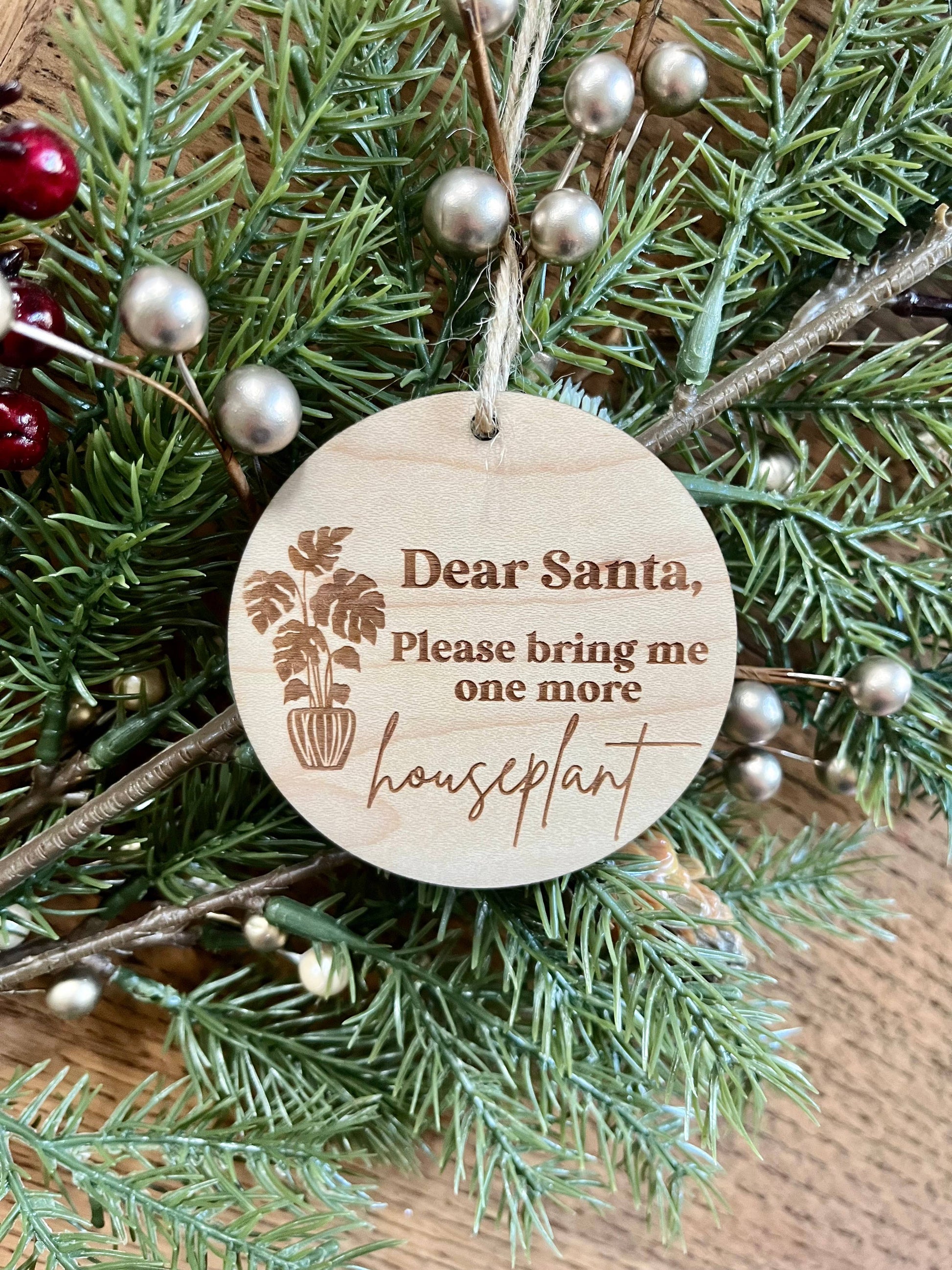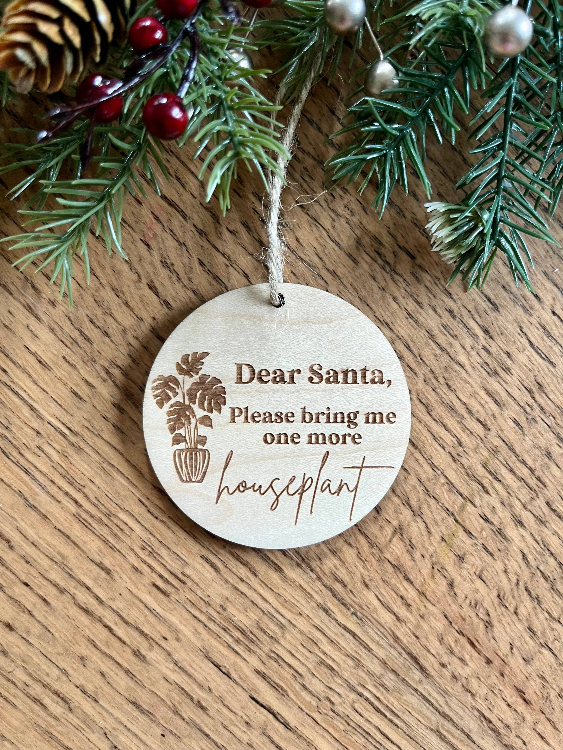 Plant lovers will love this ornament! Perfect for houseplant moms, monstera dads, etc. This ornament includes the state flower, the dogwood, and the state bird, the cardinal. This ornament comes with 2mm twine so that it can be put on the tree as soon as it gets to your door. |Ornament details| Size: 3" diameter Wood: 1/4" thick maple plywood Stain color: Natural Handcrafted with care, this ornament reflects the artistry of handmade craftsmanship and the enduring allure of classic elegance. It's a perfect addition to your seasonal decorations, bringing a touch of refinement and storytelling to your home.