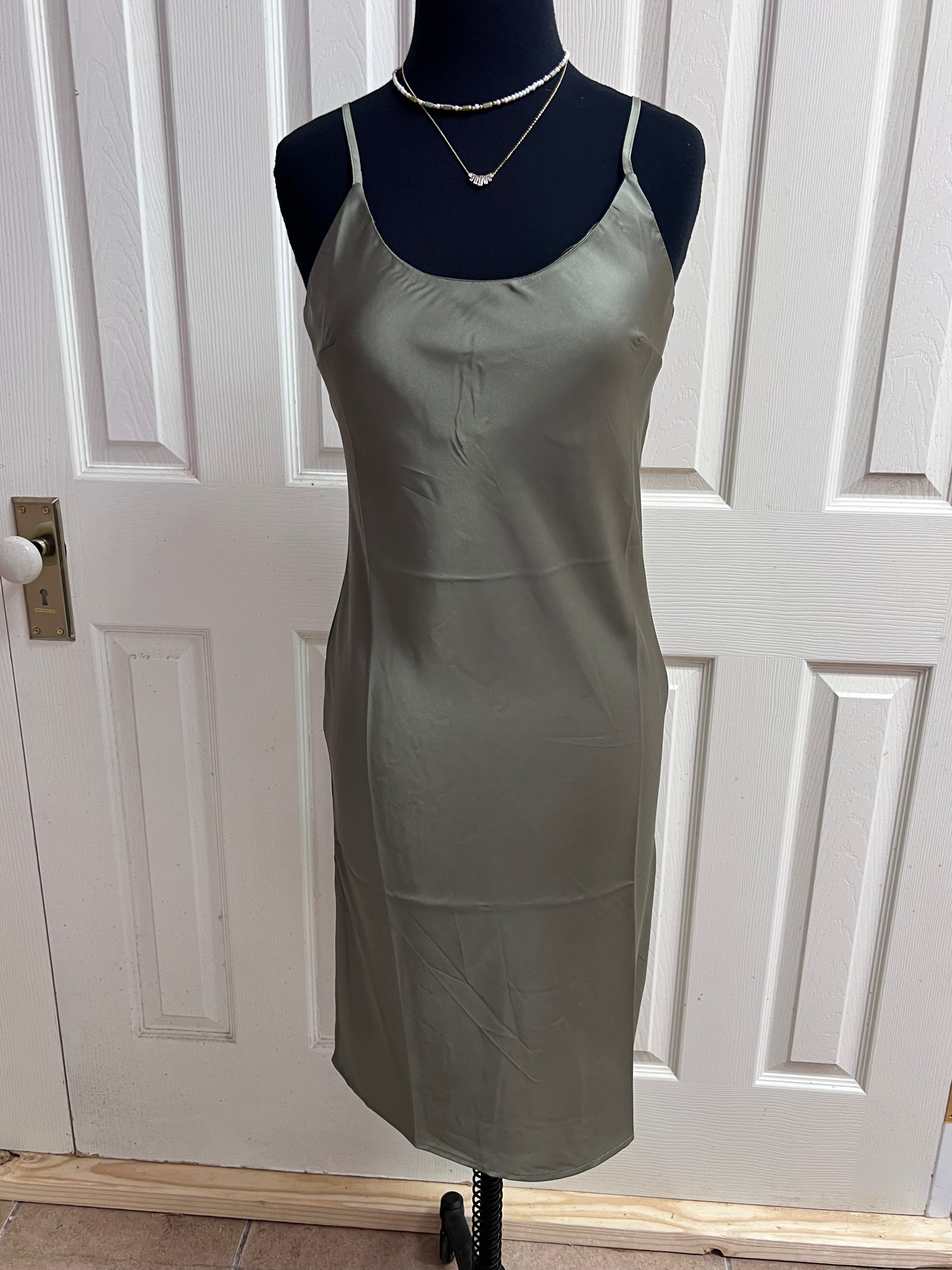 Green Satin Midi Dresss