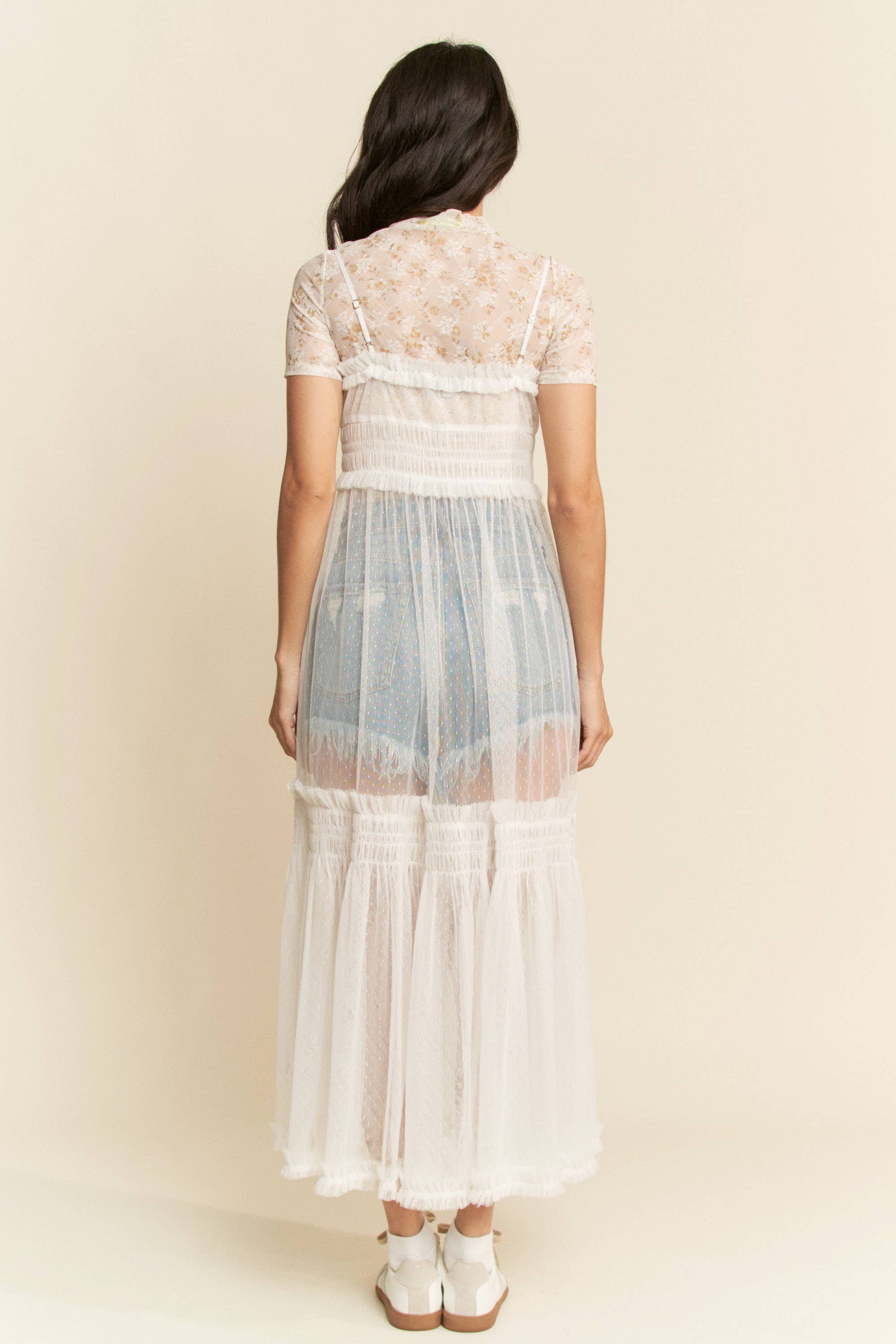 LACE SHEER MAXI DRESS: White