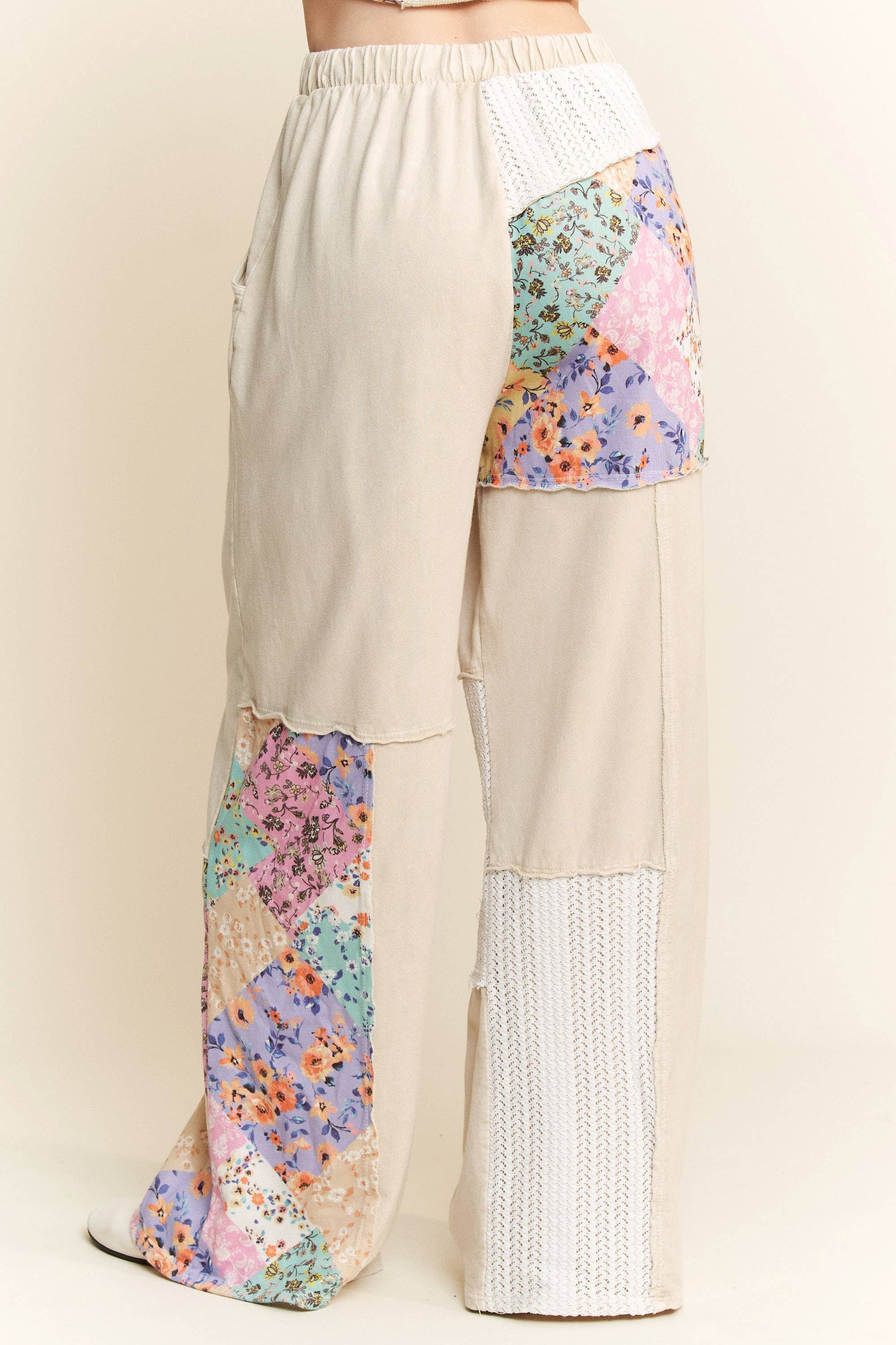 Mineral Washed Floral WaveKnit Jacquard Boho Wide Leg Pants . Actual colors may vary due to screens displaying colors different. *