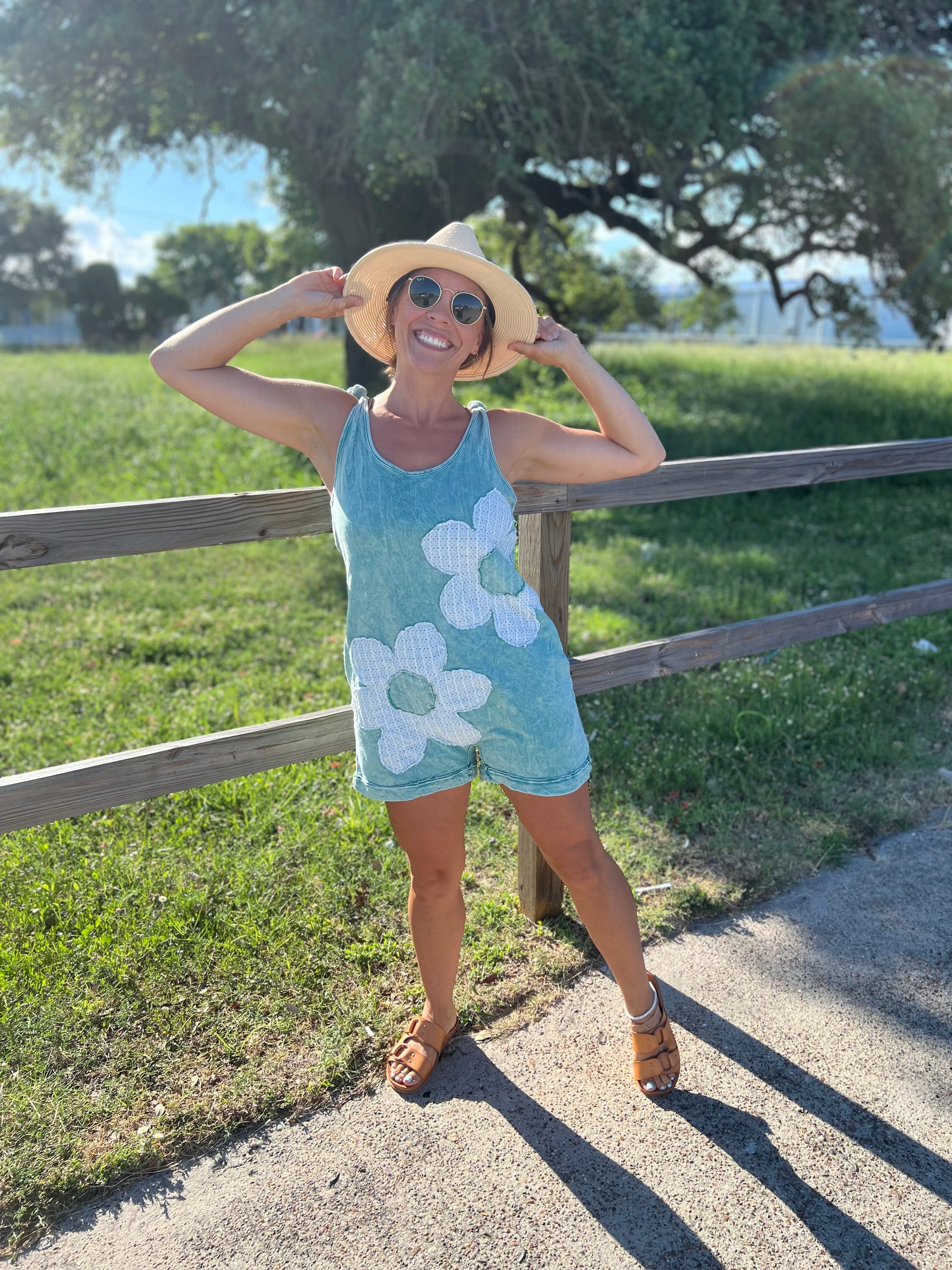 Flower Romper - Dusty Cyan