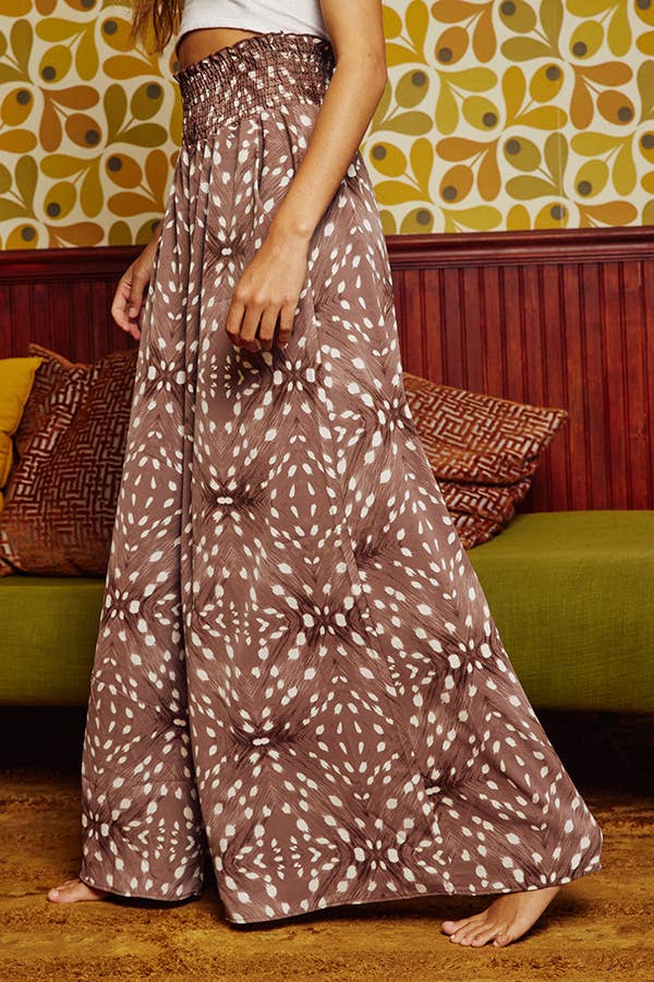Smocked Waist Maxi Pants W Side Pocket: MOCHA