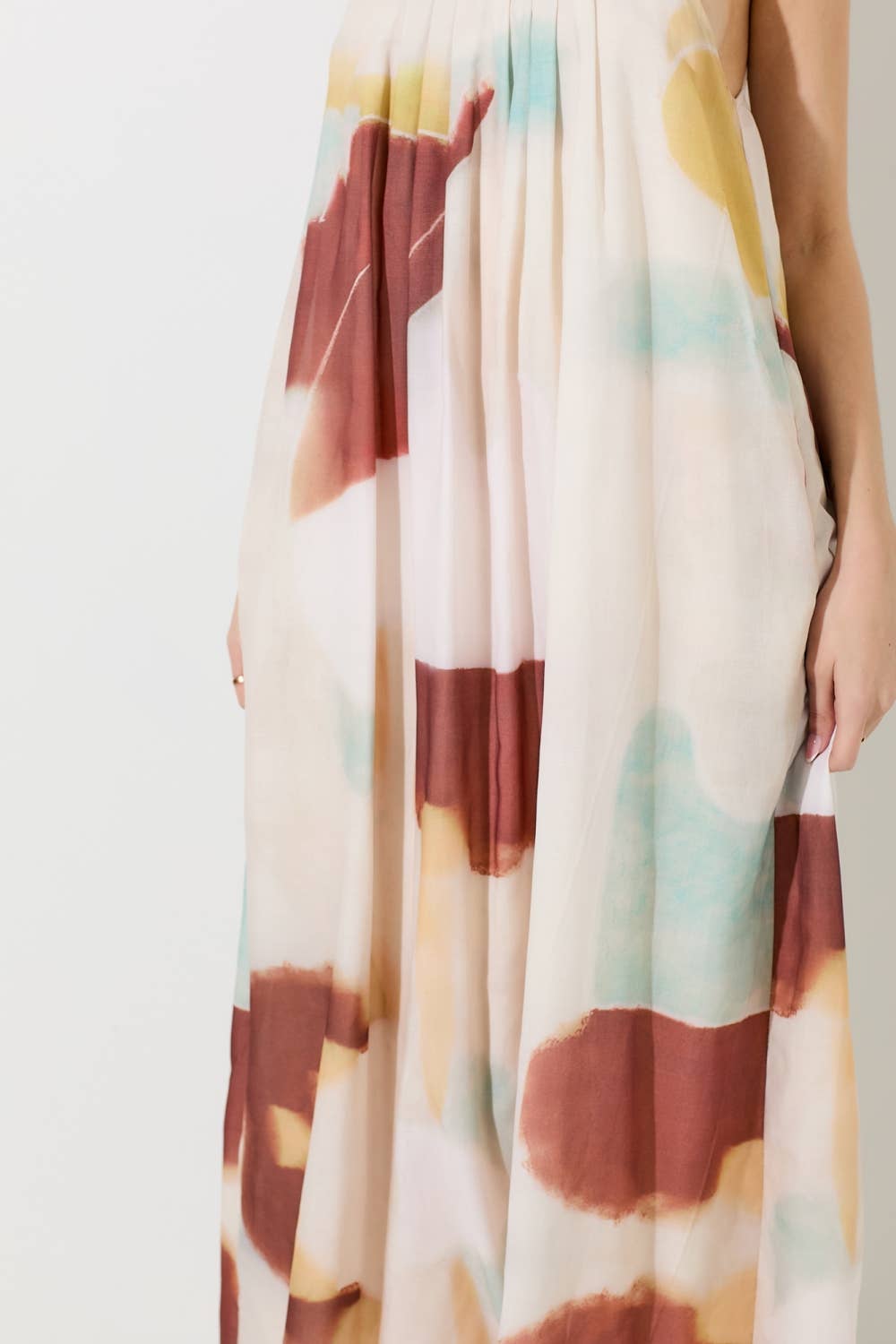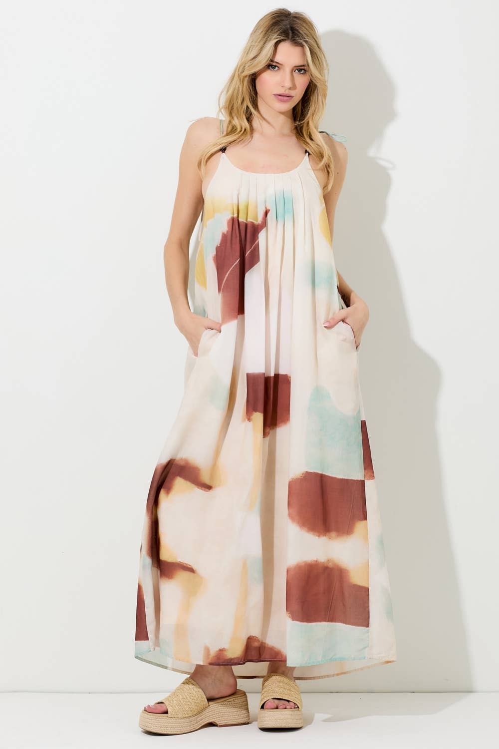 PRINTED SHOULDER TIE MAXI DRESS: RED MULTI