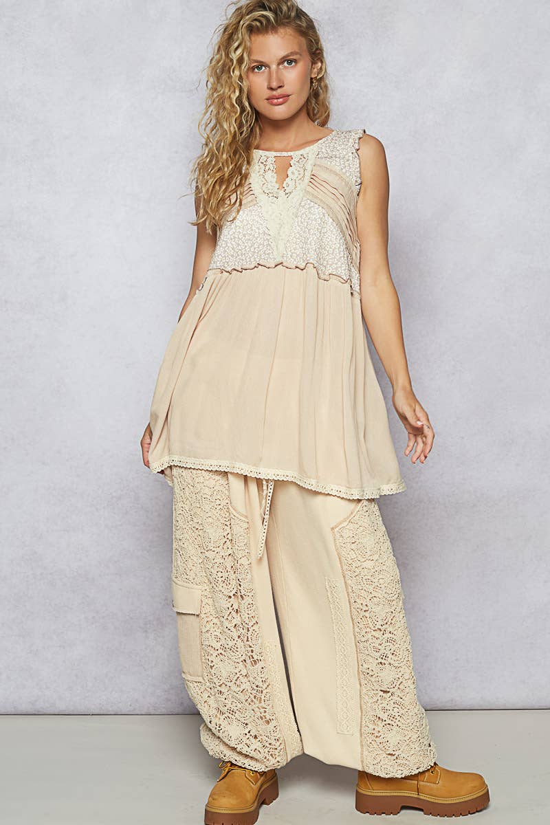 Round neck sleeveless contrast printed woven top