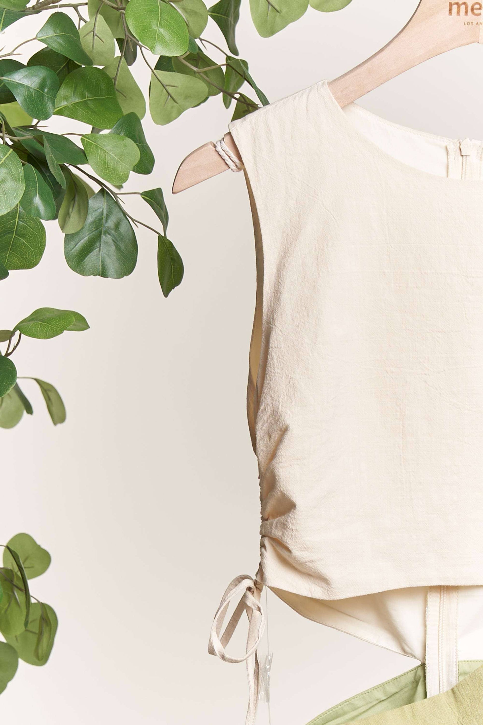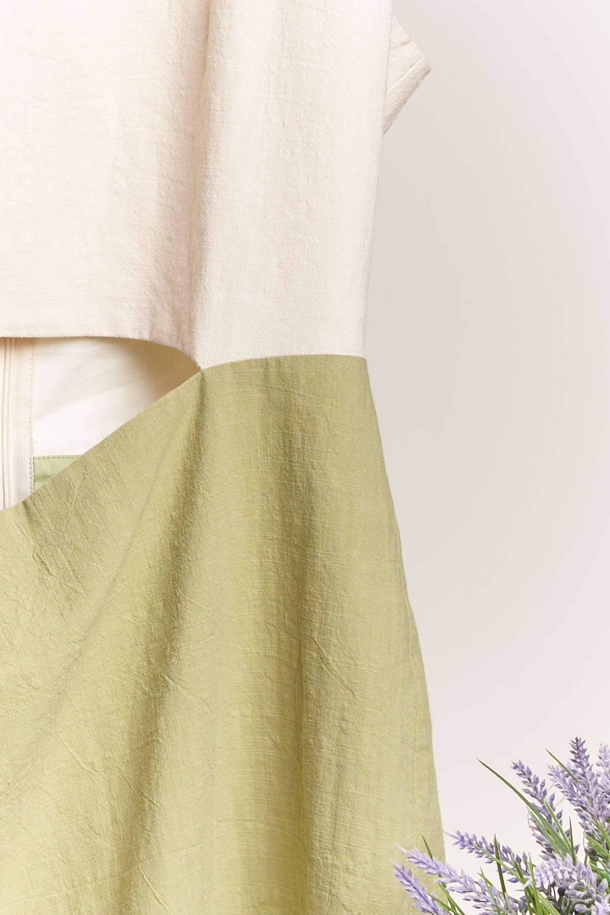 Sleeveless Color Block Dress with Side Cutout: Olive
