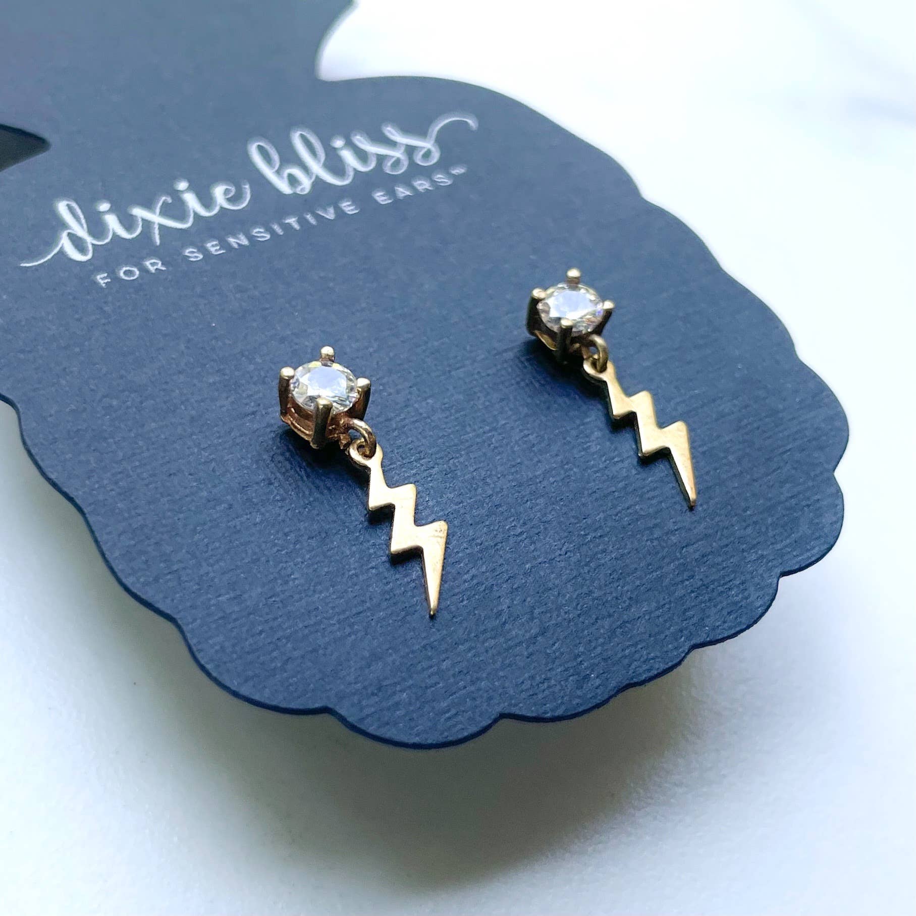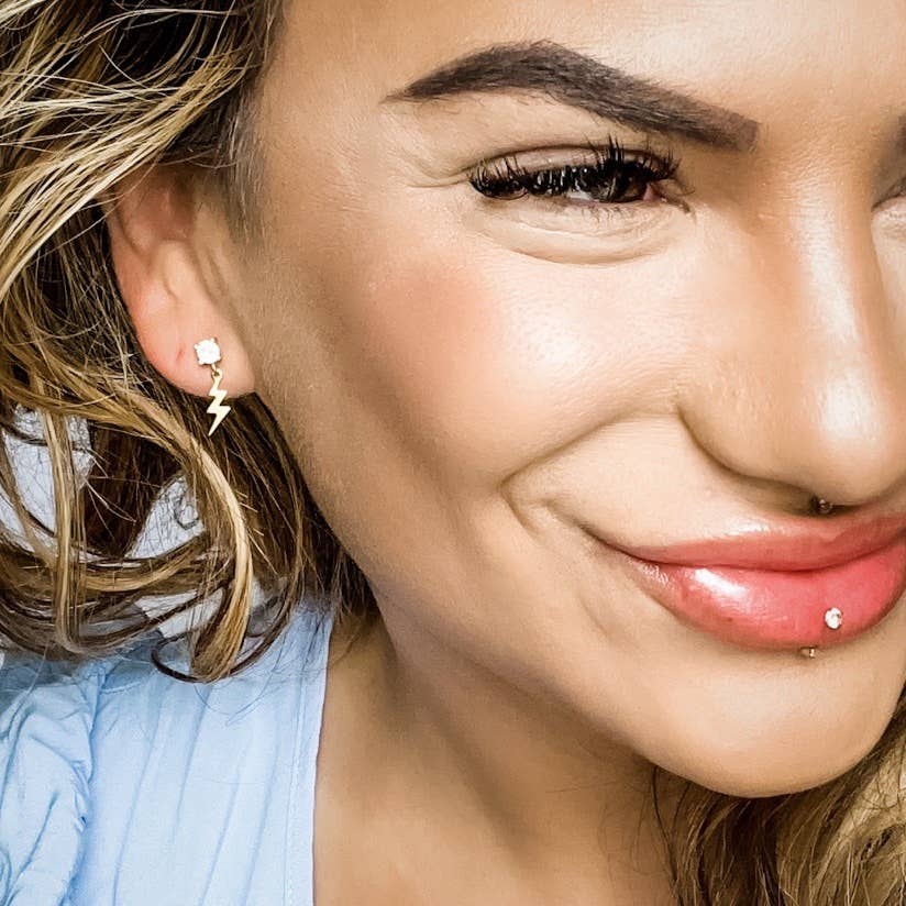 Spark of Zeus is dainty and features: *4mm CZ Stud *Micro Vintage Brass Patina Lightning Bolt *Measures 0.7" from the top *Posts are Stainless Steel *Great for sensitive ears *Made in the USA
