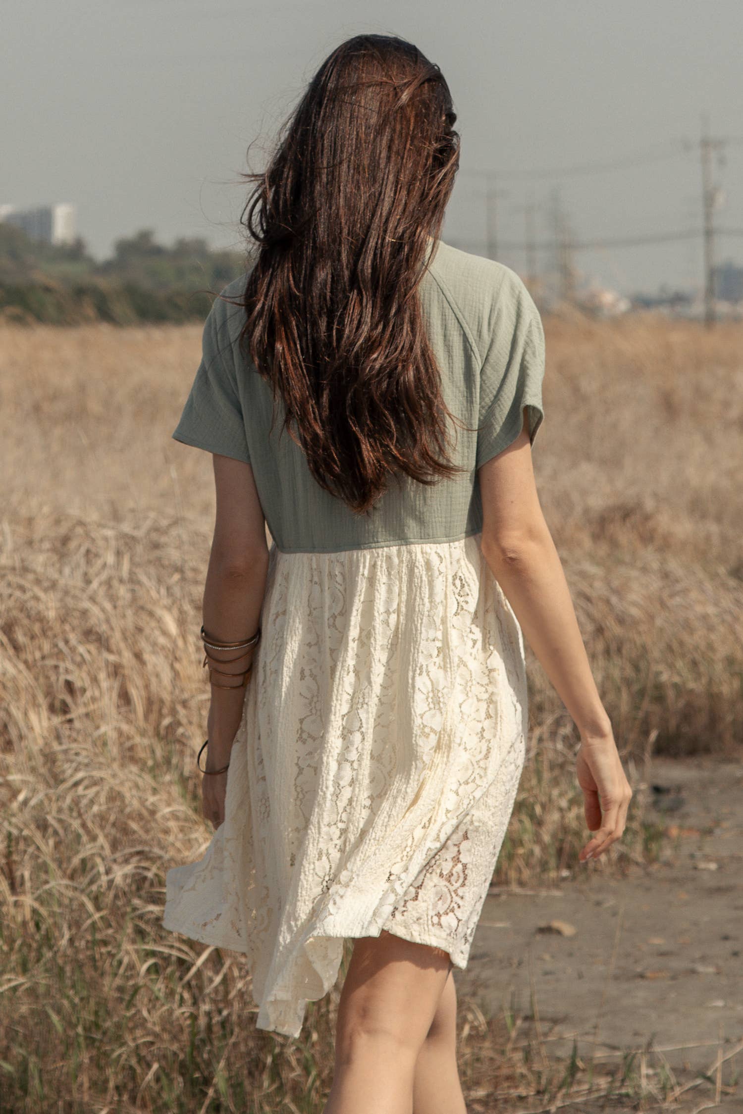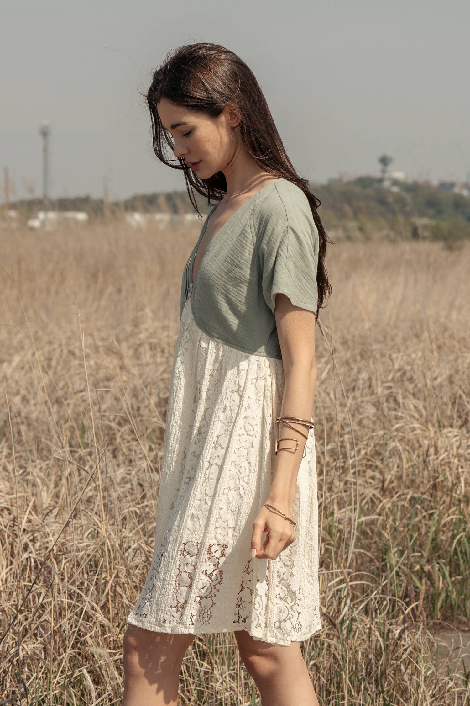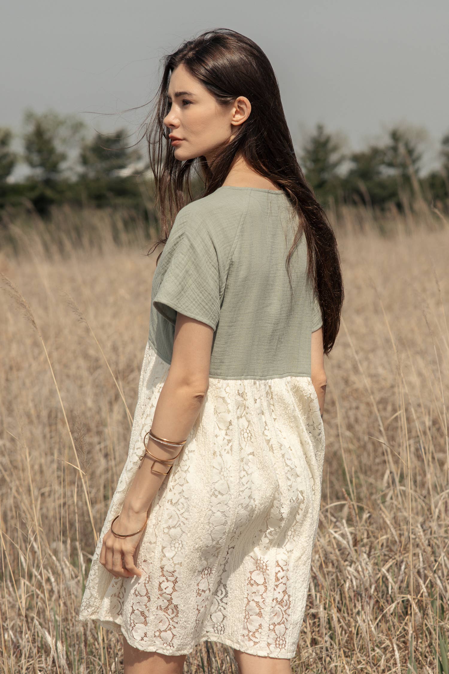 Color Block Mini Lace Dress: Mint/Ivory