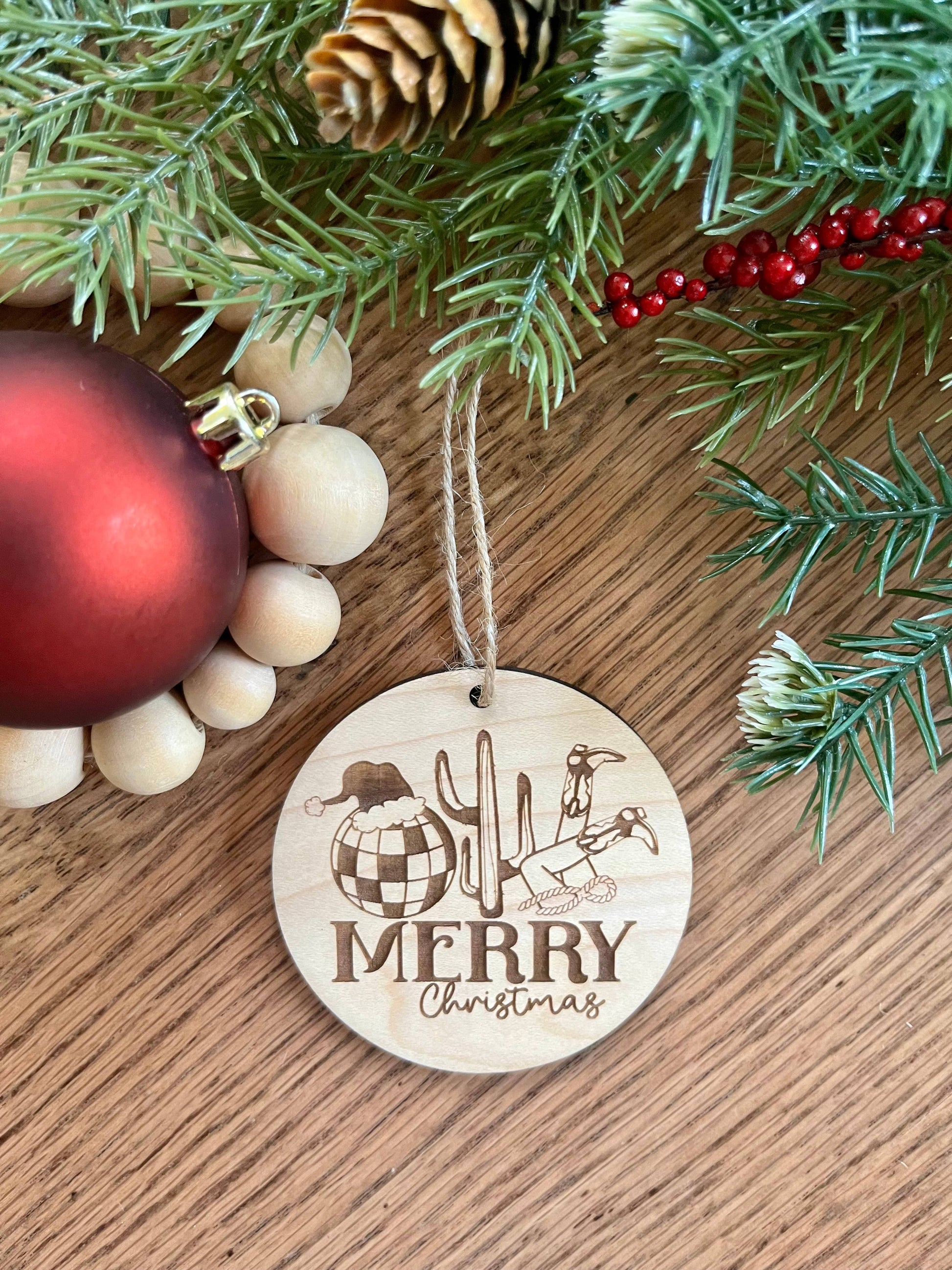 Holiday cowboy boot fit for a southern tree! Western themed that looks cute and festive. Perfect for the cowgirls! This ornament comes with 2mm twine so that it can be put on the tree as soon as it gets to your door. |Ornament details| Size: 2.7” wide x 3.5” tall Wood: 1/4" thick maple plywood Stain color: Natural Handcrafted with care, this ornament reflects the artistry of handmade craftsmanship and the enduring allure of classic elegance. It's a perfect addition to your seasonal decorations, bringing a touch of refinement and storytelling to your home.